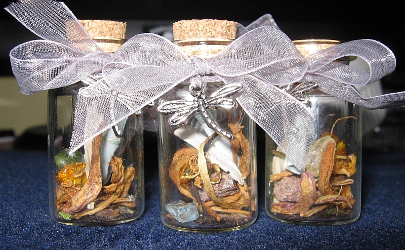 The four elements are usually represented in the four quarters of the magic circle. As all living things are believed to have spirit, plant, animal and human, the elements are believed to have spirits that rule over them. These spirits are called elementals. In addition to being called upon as the guardians of the circle by some, they can also be called upon to ask for help in spells and rituals. The Elementals for each element are as follows: Air: Sylphs. Fire: Firedrakes and Salamanders. Water: Nymphs/Water Faeries and Mermaids/Mermen. Earth: Gnomes It is important to have a balance of all these elements within us to be healthy in mind body and spirit. You only need to think of how everything looks better after a shower of rain but when too much of that element is present in the form or a flood you can see how destructive this can be. The same is true for our own bodies. Too much water energy may cause you to be overly emotional or depressed. As with anything, the elements should always be balanced in your rituals. Too much of anything can be just as bad as not enough and that is the purpose of this magickal spell bottle. Most things in ritual, as well as in life, correspond to an element. These correspondences may be useful in determining how to represent each element in ritual. They can also be useful in gaining a better understanding of the nature of each element and what it represents. The ones I have chosen for your Magickal Spell Bottle are: 4 elemental crystals Air Citrine Fire Amber Water Blue Topaz, Earth Peridot 4 elemental herbs Air sage Fire Dragon's blood Water Seaweed Earth honeysuckle This Magickal Spell Bottle was charged with Reiki energy during a sacred ritual and sealed with energy streams and a symbolic affirmation scroll appropriate to this type of working. Each ‘ingredient’ has the ability to connect you more fully to the natural world around you, so that you become one with nature, the Universe and all of creation. These ingredients are safely enclosed within your bottle, the spell itself is held within the silver charm or crystals on the outside of your bottle. Once you have purchased your bottle you will be emailed your activation charm instructions to release the energy of the spell, this can be called upon as often as needed so you can use it for other situations which are in line with the nature of the Magickal Spell Bottle. Do not open the bottle which contains the ingredients as this will weaken the spell’s energy and may cause damage to the bottle and cork.