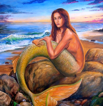 above the waist, merging into a strong fish-tail below. Their hair comes in a